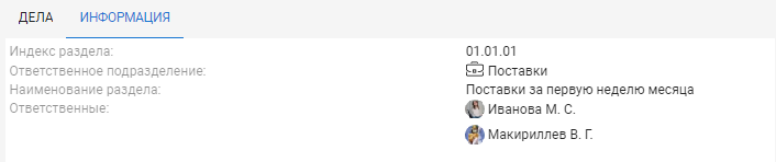 При назначении ответственного за раздел подразделения, все сотрудники данного подразделения получают доступ на чтение раздела и дочерних элементов, включая дела. |
