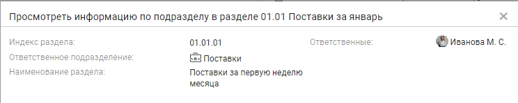 Индекс раздела,Ответственное подразделениеилиСотрудники, ответственные за раздел. -