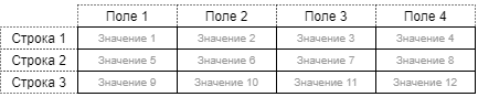 В секции может храниться одна или несколько строк с данными полей секции, отдельные строки могут являться подстроками других строк.