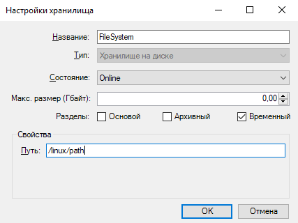 Откройте Консоль настройки Docsvision, в настройках хранилища на диске укажите путь Linux.